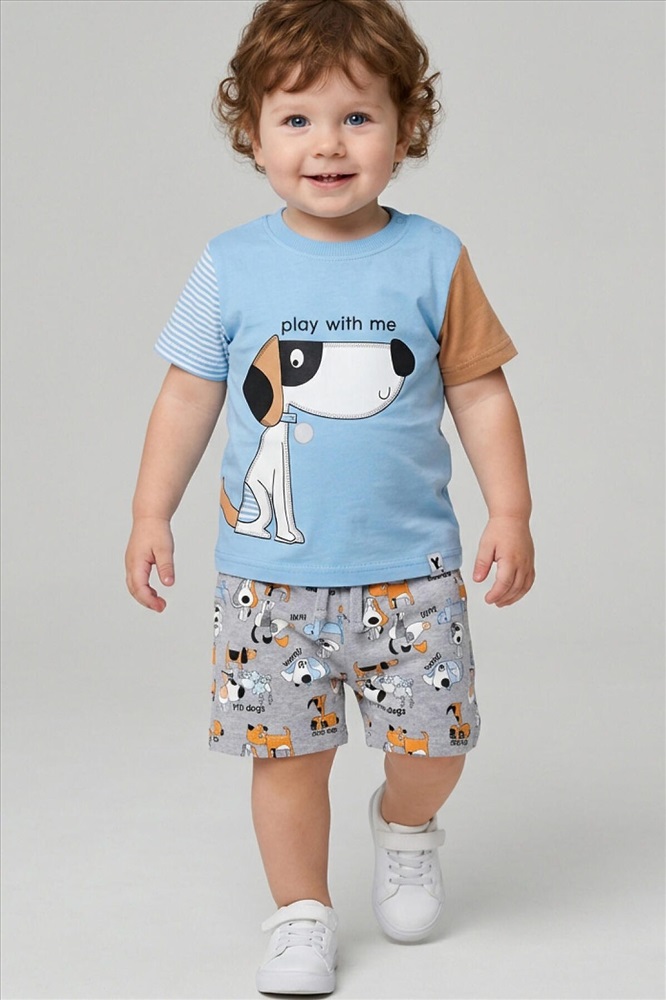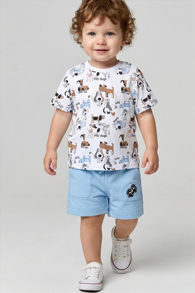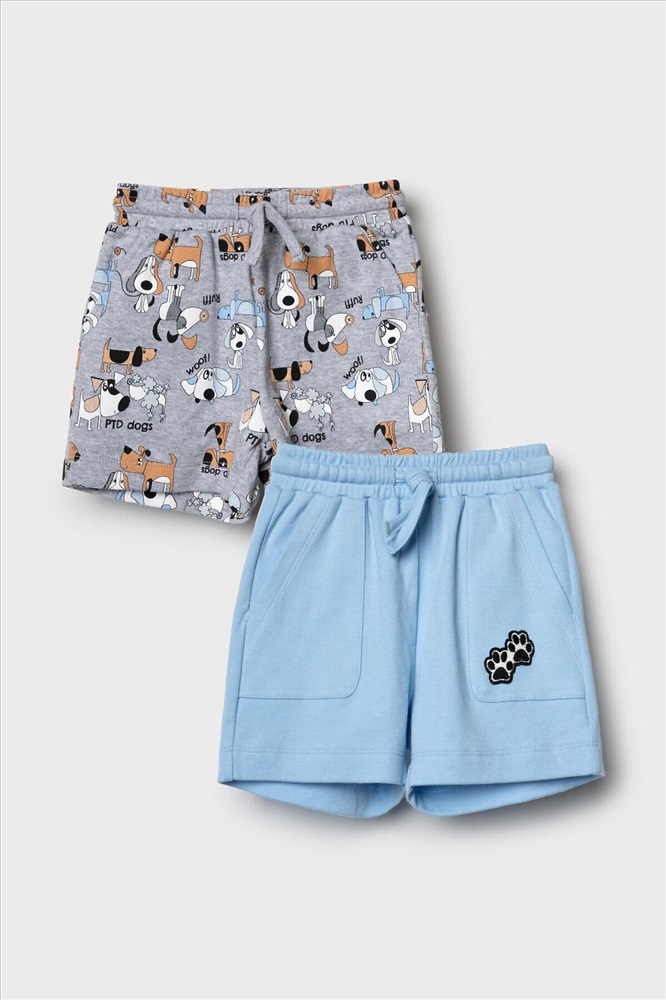 Набор детских шорт для мальчика. В комплект входят две пары шорт свободного кроя. Модели из мягкого, хлопкового трикотажа интерлок. Удобная посадка обеспечивается эластичным поясом со шнуром. По бокам расположены два кармана.