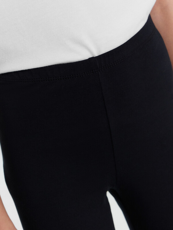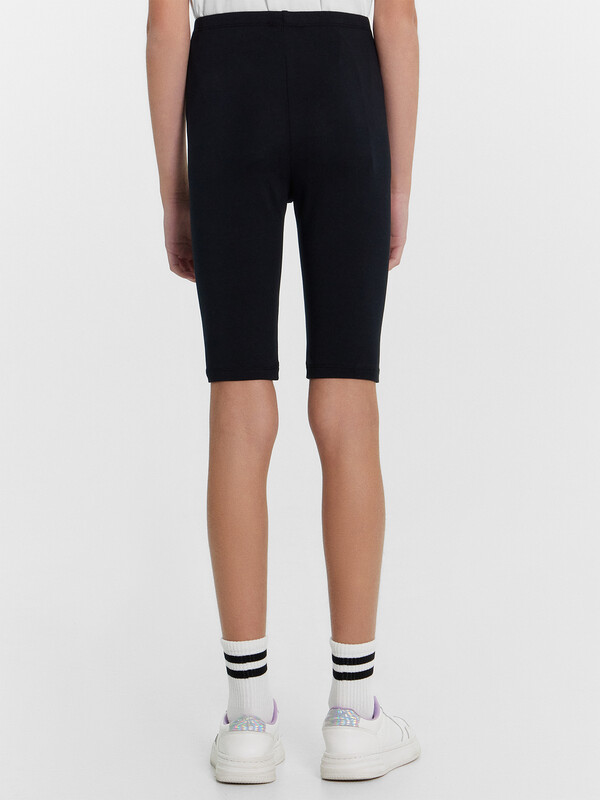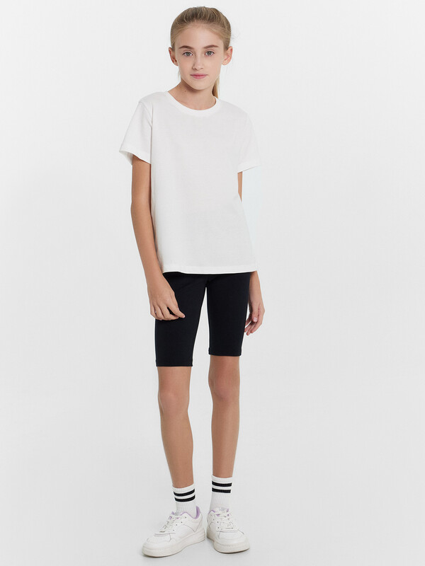 Шорты-велосипедки из трикотажного полотна кулирного переплетения. Длина шортов – до колена, силуэт – облегающий. Пояс с эластичной тесьмой. Нижние срезы подогнуты. Стильный и очень комфортный вариант!