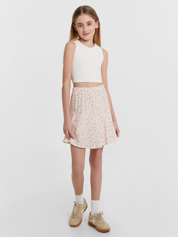 Шорты-юбка для девочек идеально подходит для создания стильных и разнообразных образов юных модниц. Модель отличается высокой посадкой и эластичным поясом, что обеспечивает комфортную и удобную посадку. Крой немного расширяется к низу, а длина изделия выше колена, что придает ему элегантный и современный вид. Нижний край шорт обработан швом в подгибку с закрытым срезом, что добавляет аккуратности и долговечности. Модель выполнена из нежной струящейся вискозы, которая обеспечивает легкость и приятные ощущения при носке.