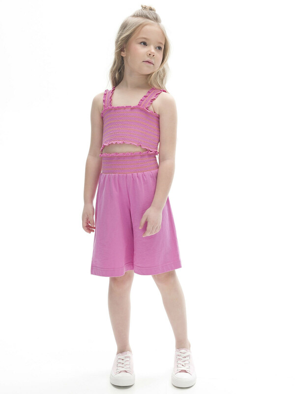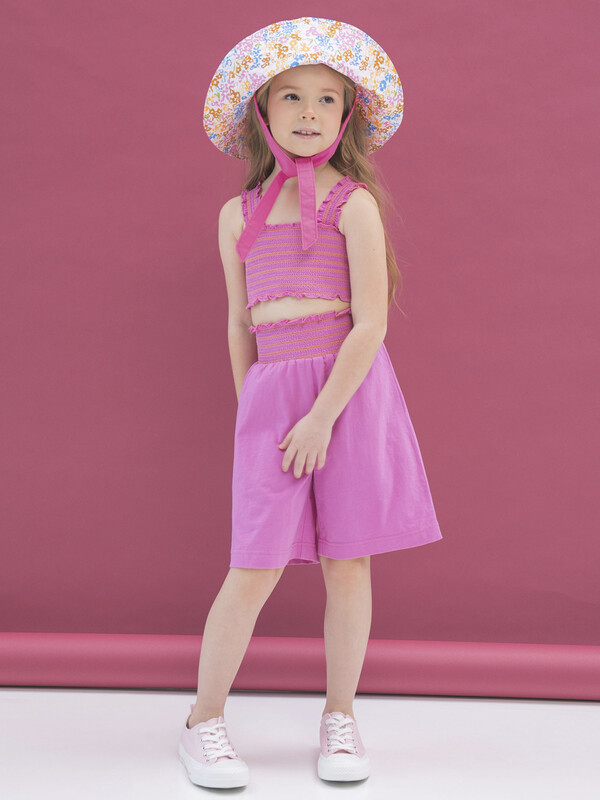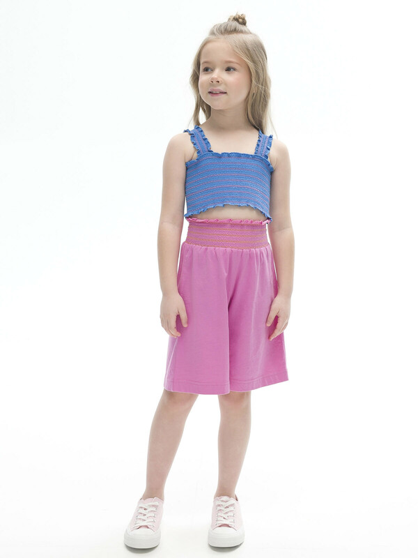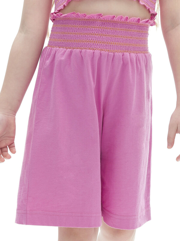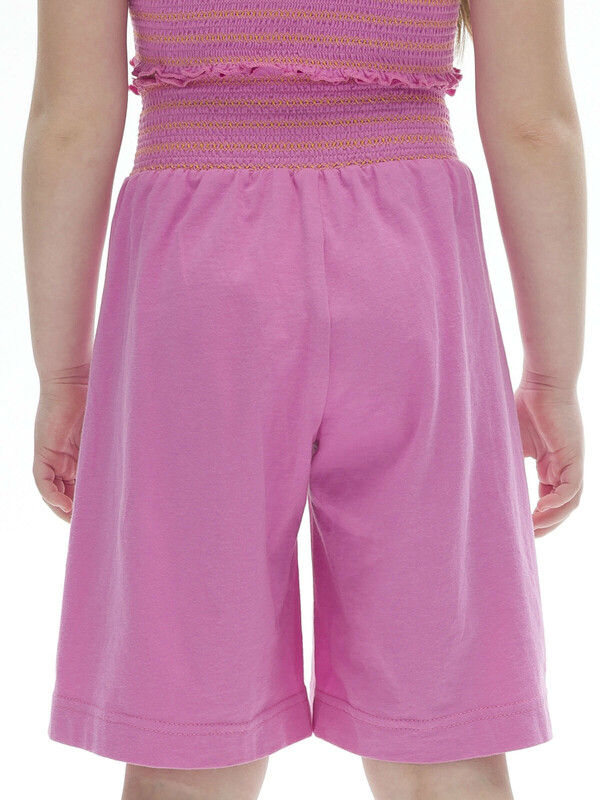 Производитель: Pelican Шорты-бермуды из 100% хлопка для девочки. Натуральный состав ткани и свободный крой обеспечивают комфорт вашему ребёнку. Изделие приятное на ощупь и отлично подходит для жаркой погоды. Пояс модели украшает горизонтальная сборка контрастными нитками с деликатным рюшем вверху — актуальный летний тренд. Такие шорты будут носиться долго. Ребёнок растёт, и они словно "растут" вместе с ним. Однотонные яркие бермуды легко сочетать с топами и футболками различных силуэтов и расцветок.