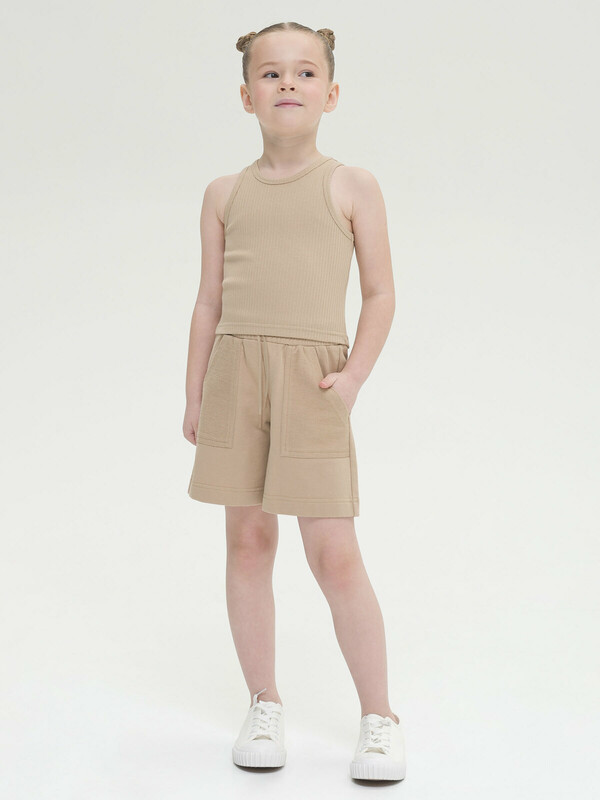 Бермуды для девочек. Выполнены из футера. Отлично держат форму и объем. Высокая посадка - тренд сезона. Объем по талии регулируется внутренним шнуром. Акцентные накладные карманы на переде выполнены изнаночной стороной ткани - можно сложить самое необходимое (ключи, телефон). Идеальны для активных игр и прогулок, они отличаются комфортной посадкой, удачным кроем, практичны в использовании. Прекрасно сочетаются с футболками, кроп-топами, майками, толстовками.