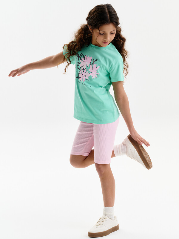 Трикотажные шорты для девочки подростка, подойдут для повседневной носки в школу, в сад, на прогулку. Идеальны для занятия спортом танцами, гимнастикой.