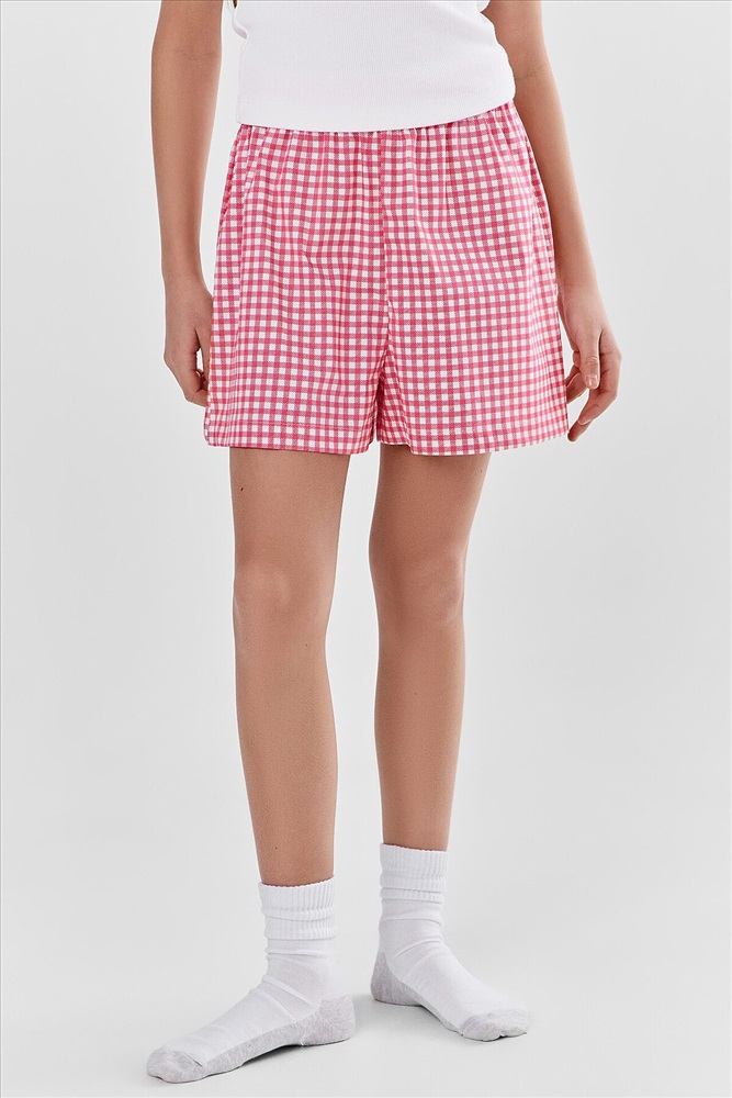 Шорты свободного силуэта. Пояс цельнокроеный внутри с резиной 40RV. Низ шорт в подгибку.