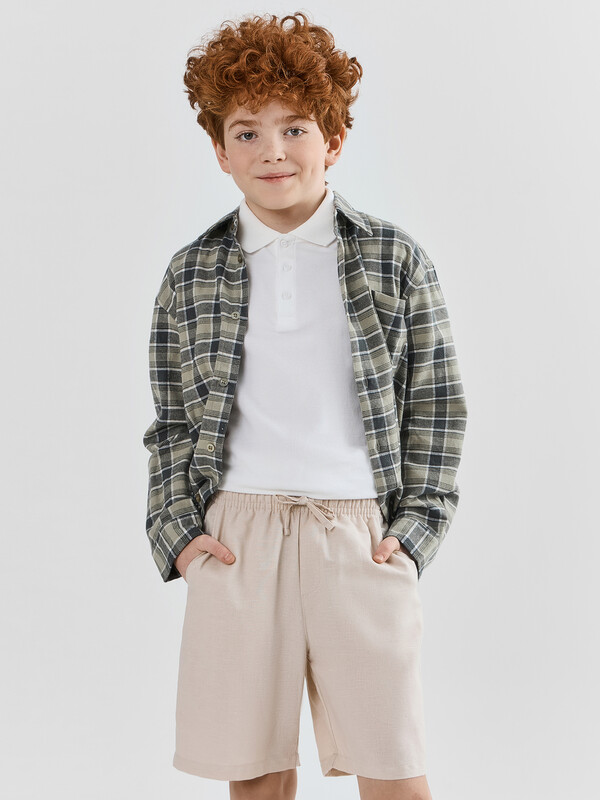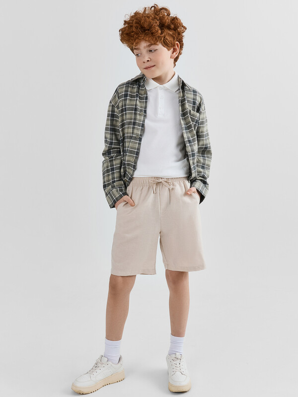 Шорты для мальчиков — отличный вариант на лето. Они выполнены из льна и хлопка, что обеспечивает превосходную воздухопроницаемость и комфорт в жаркую погоду. Модель прямого силуэта со средней посадкой и эластичным поясом на кулиске позволяет легко надевать и снимать шорты, а также обеспечивает оптимальную посадку. Спереди предусмотрена имитация гульфика, что добавляет модели стильности и практичности. А боковые карманы удобны для хранения мелочей. Низ модели обработан швом в подгибку, что придает аккуратный и завершенный вид. Эти шорты станут идеальным выбором для активных мальчиков, обеспечивая комфорт и стиль в течение всего лета.