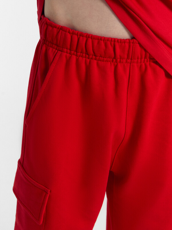 Шорты изготовлены из трикотажного полотна футер. Подкладка карманов из трикотажного кулирного полотна.