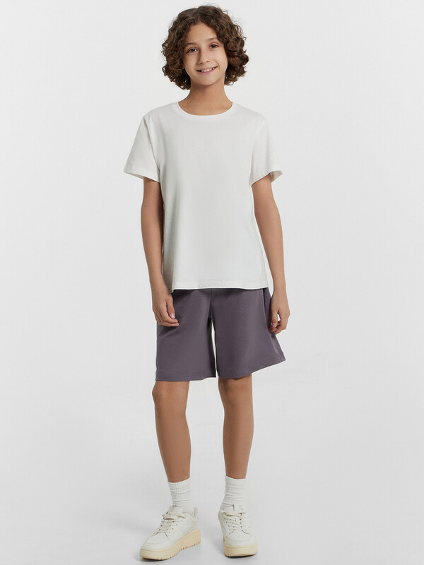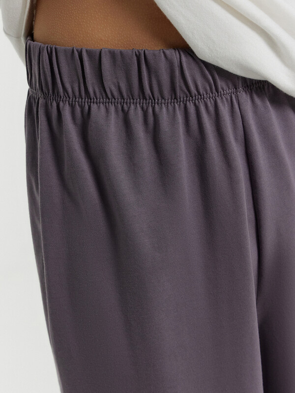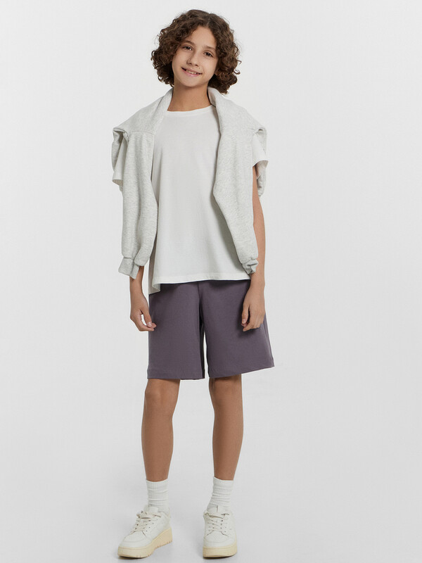 Шорты ниже колена, свободного силуэта с высокой посадкой на талии. Пояс цельнокроеный внутри с резиной 40RV. Внутри пробиты петли и втянута х/б тесьма 10TGY-0 Низ шорт в подгибку.