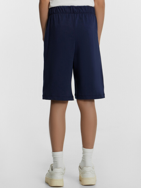 Шорты ниже колена, свободного силуэта с высокой посадкой на талии. Пояс цельнокроеный внутри с резиной 40RV. Внутри пробиты петли и втянута х/б тесьма 10TGY-0 Низ шорт в подгибку.