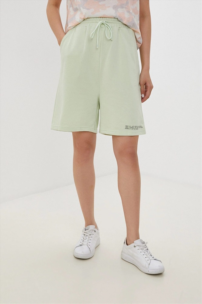 ID товара: 1213181 Состав: 85% Хлопок, 15% Полиэстер Сезон: Весна/Лето Длина: Средняя Фасон: Широкие Вид застежки: Шнурок Рисунок: Надпись Тип карманов: В шве Декоративные элементы: Принт Основная ткань: Хлопок Стиль: Повседневный Страна бренда: Россия Страна производства: Беларусь Женские шорты Indefini. Комментарии к товару