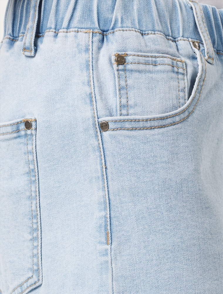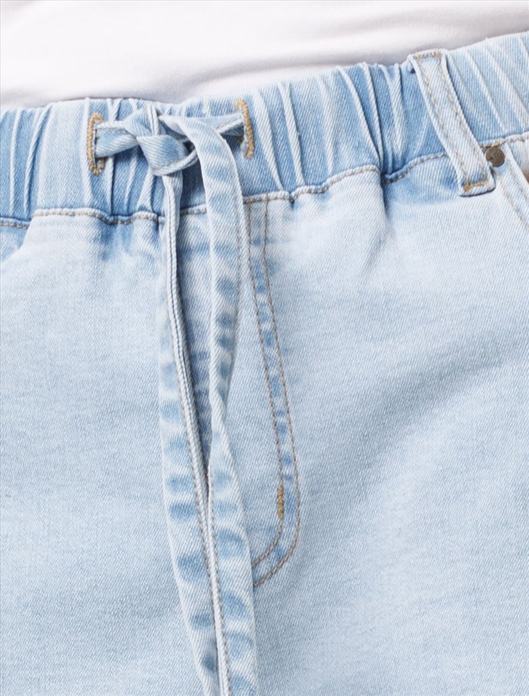Шорты с легкой декоративной стиркой выполнены из эластичного денима. Модель с ложным гульфиком и поясом из эластичной резинки со шнурком из основного полотна. За счет эластана изделие хорошо тянется и гарантирует комфорт и формоустойчивость. Подходит для любой фигуры.
