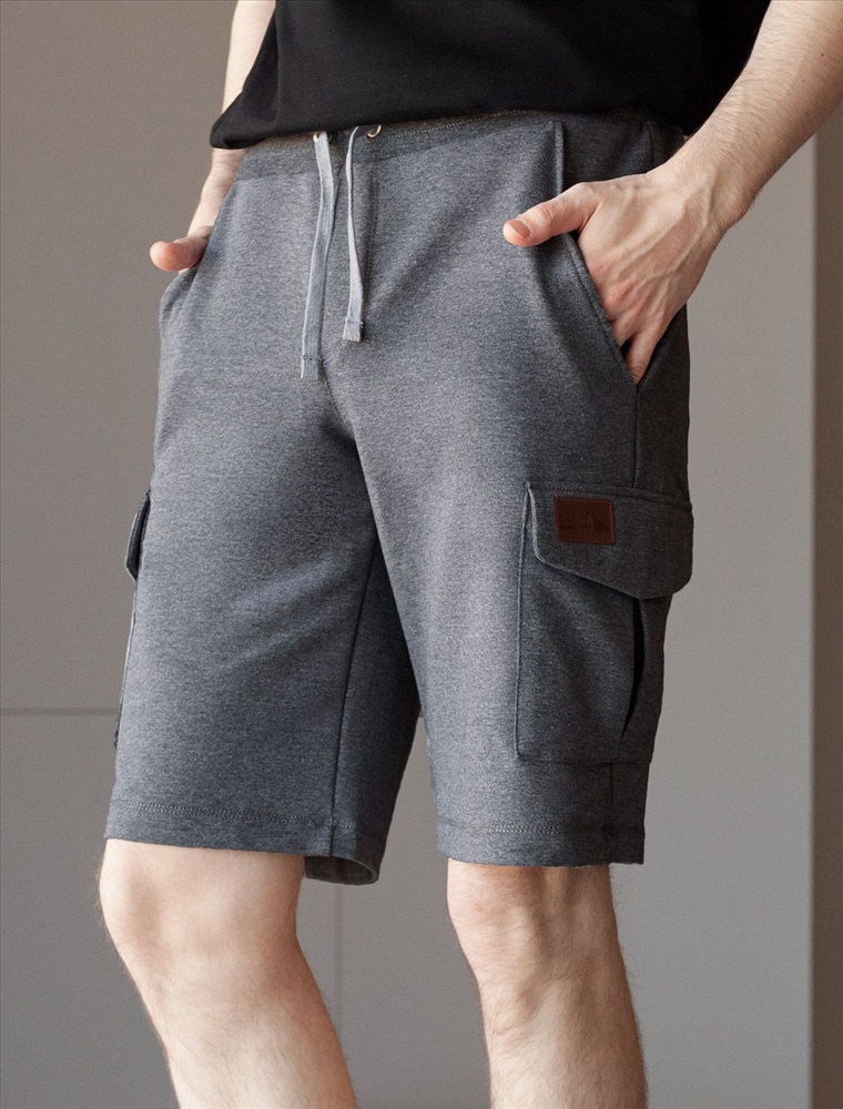 Состав: 80%Хлопок 20%ПЭ; Плотность: 170 Г/м2; Параметры модели на первом фото: Рост 190, бюст 108, талия 87, бедра 104 Шорты выполнены из легкого футера с эластаном. Мягкий материал хорошо пропускает воздух и поддерживает оптимальный микроклимат даже в жаркое время года, поэтому в изделии будет комфортно в течении всего дня. На кармане нашивка логотип бренда из эко-кожи.