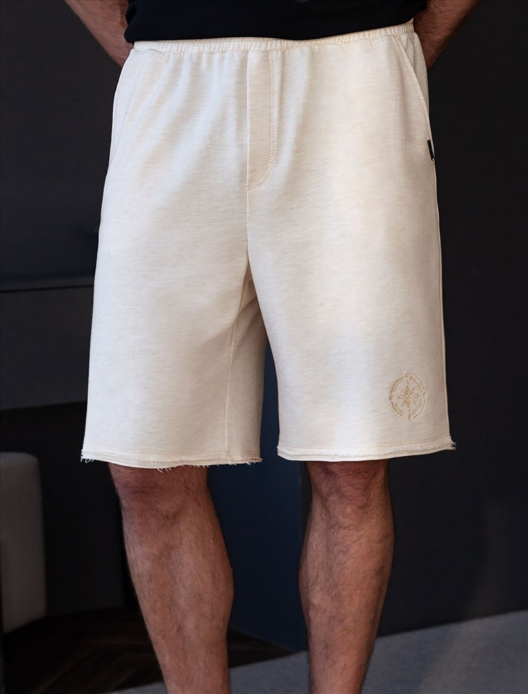 Перевод принта: not all those who wander are lost - не все, кто бродят по миру, потеряли свой путь. Шорты в оттенке серый меланж выполнены из тонкого футера. Модель прямого кроя дополнена трендовыми открытыми срезами и лаконичной вышивкой роза ветров. Эластичный пояс на резинке с внутренним шнуром комфортно фиксирует изделие не сковывая движений. По бокам удобные карманы. Наличие ПЭ в составе изделия способствует формоустойчивости. Фирменный металлический логотип бренда и нашивка из эко-кожи.