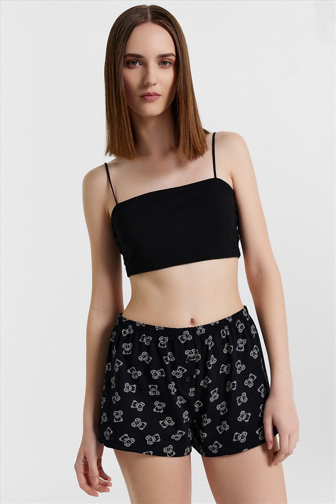 ID товара: 1119273 Состав: 99% Хлопок; 1% Эластан Сезон: Весна/Лето Длина: Средняя Фасон: Прямые Вид застежки: Без застежки Посадка: Низкая Рисунок: Фантазийный Тип карманов: Без карманов Декоративные элементы: Пуговицы Основная ткань: Хлопок Уход: Деликатная стирка при 30 градусах Особенности модели: Нет Фактура материала: Кулирное полотно Страна бренда: Беларусь Страна производства: Беларусь Женские домашние шорты — это комфорт и стиль для уютных дней дома. Модель прилегающего силуэта отличается аккуратной посадкой, подчёркивая линии фигуры. Короткая длина добавляет легкости, а эластичный пояс обеспечивает удобство и свободу движений. Декоративный гульфик с пуговицами по центру придает изделию оригинальность и уникальный акцент. Нижний край обработан швом вподгибку, гарантируя долговечность и аккуратный вид. Легкая хлопковая кулирка, из которой выполнены шорты, делает изделие приятным к телу, идеально подходящим для домашнего гардероба. Для создания стильного и завершенного образа их можно дополнить топом, гармонирующим по цвету и фасону. Прекрасный выбор для комфортного отдыха в любое время года! Комментарии к товару