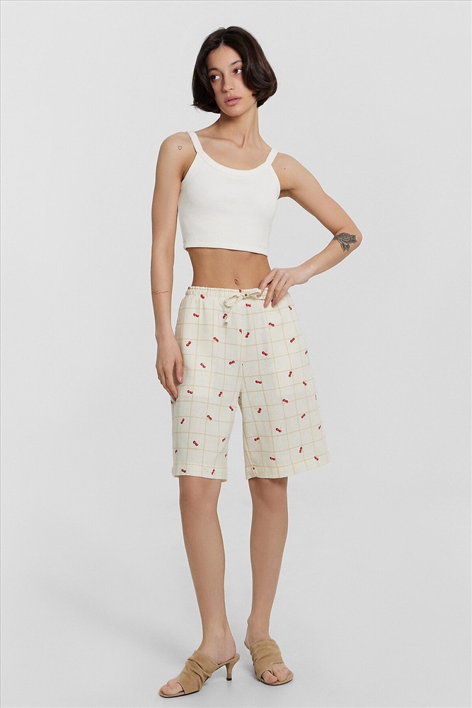 ID товара: 1132138 Состав: 55% Лен; 45% Район Сезон: Весна/Лето Длина: Средняя Фасон: Прямые Вид застежки: Без застежки Посадка: Высокая Рисунок: Клетка Тип карманов: С отрезным бочком Декоративные элементы: Без элементов Основная ткань: Хлопок Стиль: Повседневные Уход: Деликатная стирка при 30 градусах Особенности модели: Нет Фактура материала: Тканое полотно Страна бренда: Беларусь Страна производства: Беларусь Женские шорты Mark Formelle. Свободный силуэт и натуральный материал обеспечивают удобную посадку и приятные ощущения в жаркую погоду Эластичный пояс на кулиске позволяет регулировать посадку, а боковые карманы-хулиганы добавляют практичности и нотку расслабленного, непринужденного стиля. Нижний срез аккуратно обработан швом вподгибку, что гарантирует долговечность и безупречный вид. Создайте гармоничный летний образ, дополнив шорты рубашкой из этой же коллекции! Такой комплект идеально подходит для прогулок, отдыха у моря или повседневных летних аутфитов. Стиль, удобство и натуральные материалы — лучшее сочетание для лета! Комментарии к товару