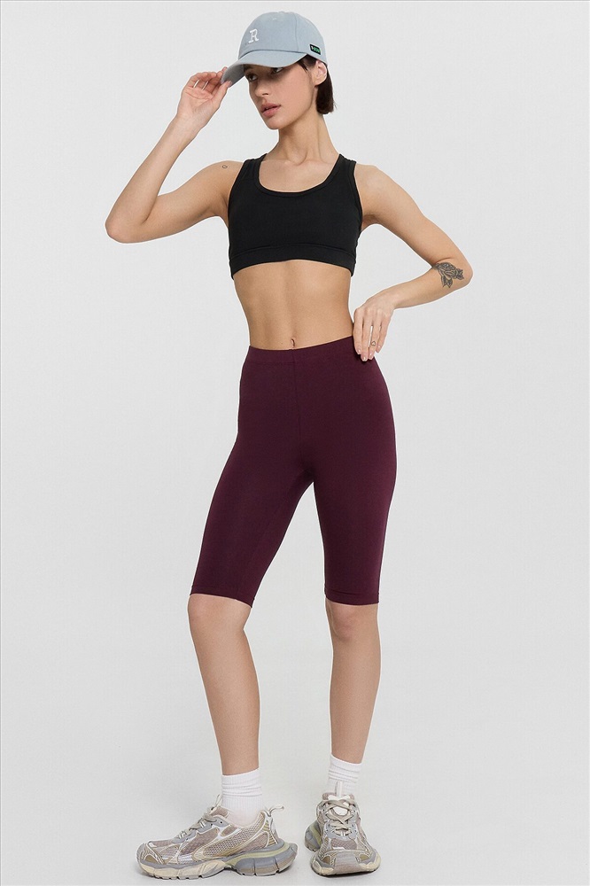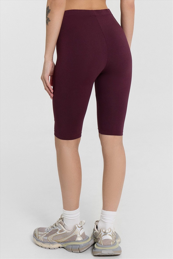 Отличные спортивные шорты. В составе полотна – натуральный хлопок и немного эластана. Длина до колена, силуэт прилегающий. Завышенная линия талии и широкий эластичный пояс дарят комфорт даже во время интенсивных занятий.