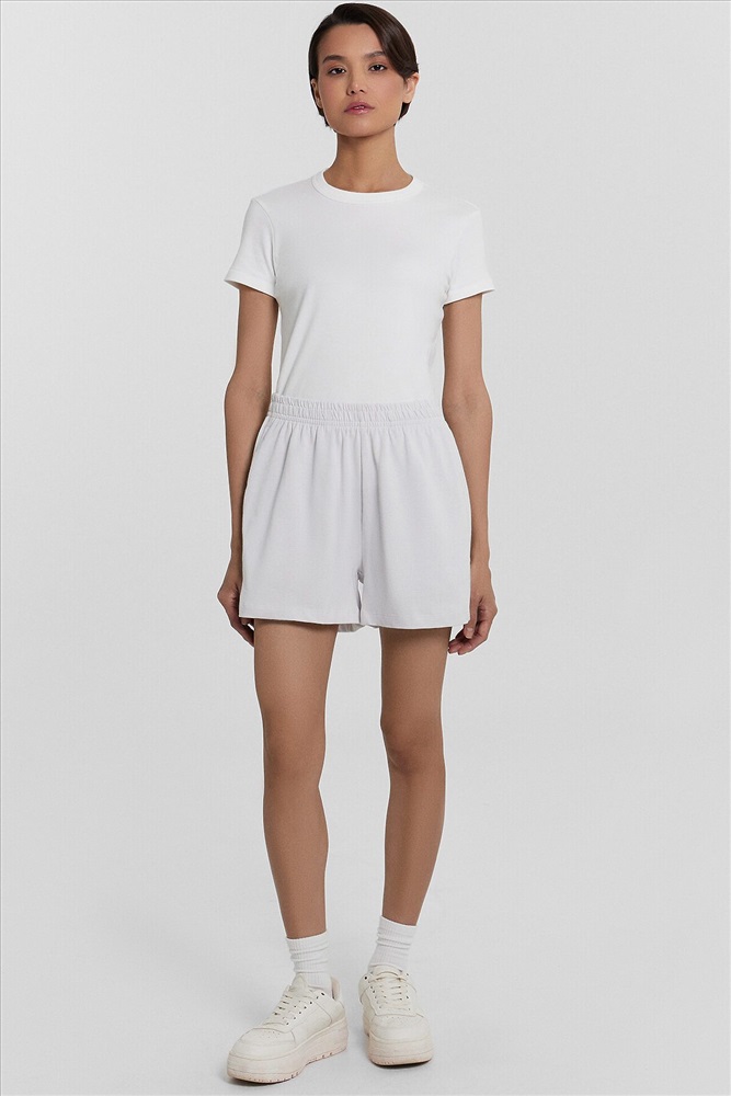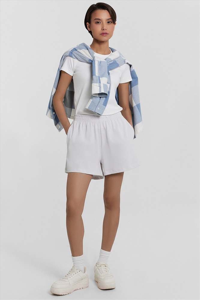 Свободные и стильные женские шорты – ваш незаменимый спутник для жарких летних дней! Модель с высокой посадкой идеально подчеркивает линию талии, а эластичный пояс обеспечивает удобную и комфортную посадку. Практичные боковые карманы и накладной карман сзади добавляют функциональности, позволяя хранить мелочи всегда под рукой. Шорты выполнены из натуральной хлопковой кулирки, что делает их мягкими, легкими и приятными к телу, обеспечивая комфорт даже в самую жаркую погоду. Нижние срезы аккуратно обработаны швом вподгибку, что придает изделию завершенный вид. Этот стильный и практичный элемент гардероба подойдет для прогулок, отдыха или встреч с друзьями – свобода и комфорт в каждом шаге!