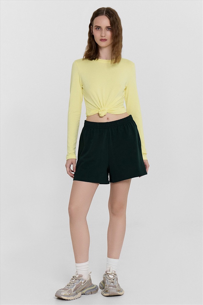 Свободные и стильные женские шорты – ваш незаменимый спутник для жарких летних дней! Модель с высокой посадкой идеально подчеркивает линию талии, а эластичный пояс обеспечивает удобную и комфортную посадку. Практичные боковые карманы и накладной карман сзади добавляют функциональности, позволяя хранить мелочи всегда под рукой. Шорты выполнены из натуральной хлопковой кулирки, что делает их мягкими, легкими и приятными к телу, обеспечивая комфорт даже в самую жаркую погоду. Нижние срезы аккуратно обработаны швом вподгибку, что придает изделию завершенный вид. Этот стильный и практичный элемент гардероба подойдет для прогулок, отдыха или встреч с друзьями – свобода и комфорт в каждом шаге!