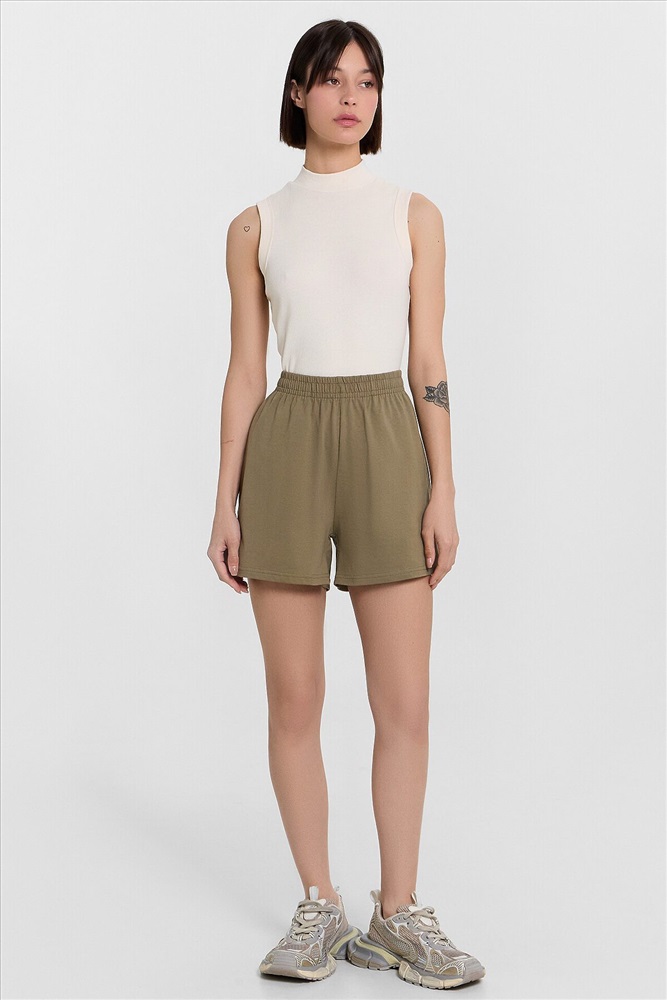 Свободные и стильные женские шорты – ваш незаменимый спутник для жарких летних дней! Модель с высокой посадкой идеально подчеркивает линию талии, а эластичный пояс обеспечивает удобную и комфортную посадку. Практичные боковые карманы и накладной карман сзади добавляют функциональности, позволяя хранить мелочи всегда под рукой. Шорты выполнены из натуральной хлопковой кулирки, что делает их мягкими, легкими и приятными к телу, обеспечивая комфорт даже в самую жаркую погоду. Нижние срезы аккуратно обработаны швом вподгибку, что придает изделию завершенный вид. Этот стильный и практичный элемент гардероба подойдет для прогулок, отдыха или встреч с друзьями – свобода и комфорт в каждом шаге!