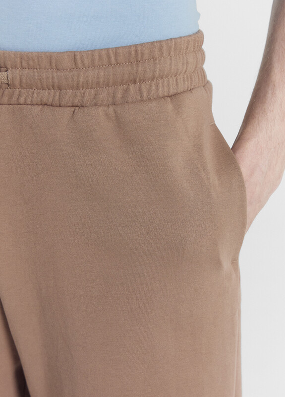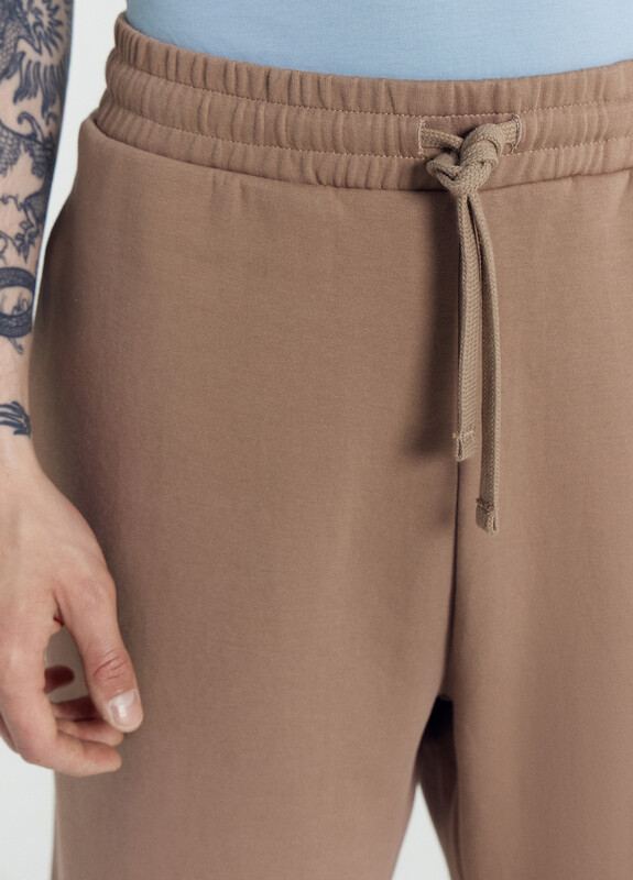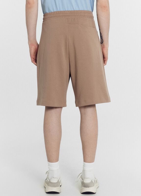 Стильные мужские шорты из трикотажного интерлока. Строгий прямой силуэт, эластичная тесьма в поясе, регулировочный шнур-завязка, удобные боковые карманы – ничего лишнего!