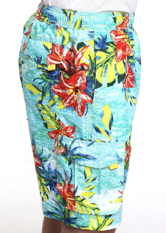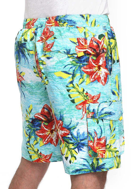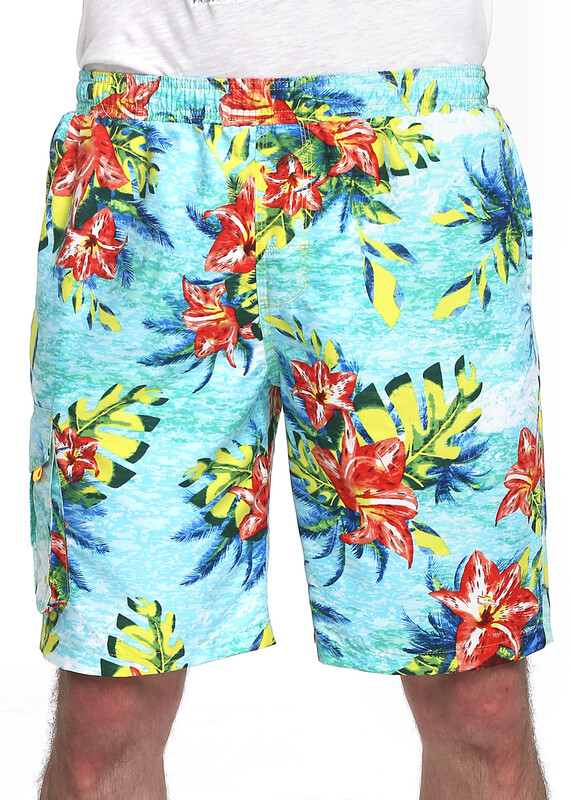 Производитель: Clever Отпускается р/р (5шт в упаковке). Пляжные мужские шорты в набивку с поясом на резинке имеют два накладных кармана по бокам и один накладной карман на липучке сзади. Выполнены из полиэстера. Модель исполнена в актуальных цветах и отлично подойдет для летних прогулок и плавания.