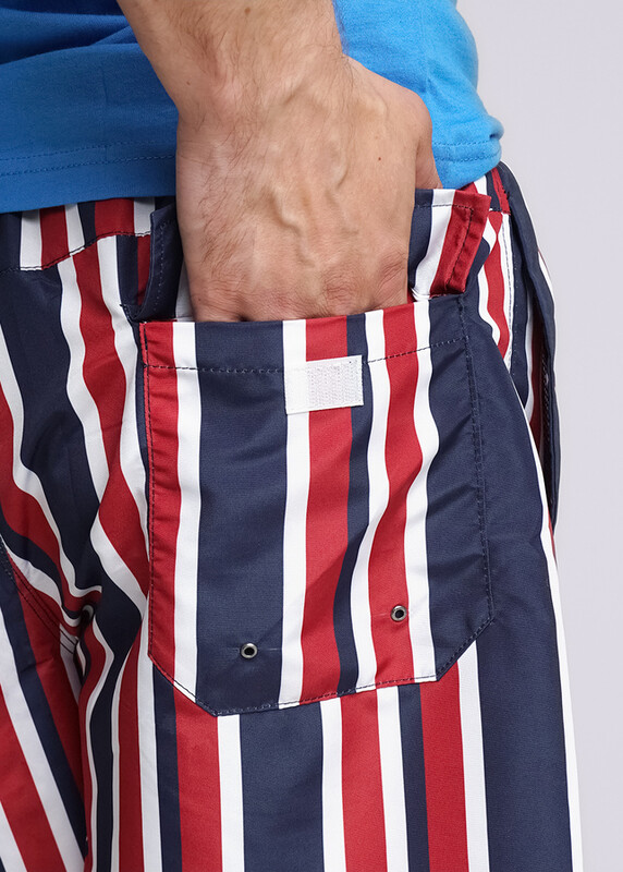 Мужские купальные шорты с широким поясом на резинке и регулируемым шнуром. Шорты с рисунком удобны в носке и не стесняют движений, для функциональности боковые карманы. В них комфортно ходить по пляжу и городу, отлично смотрятся на любом типе фигуры.