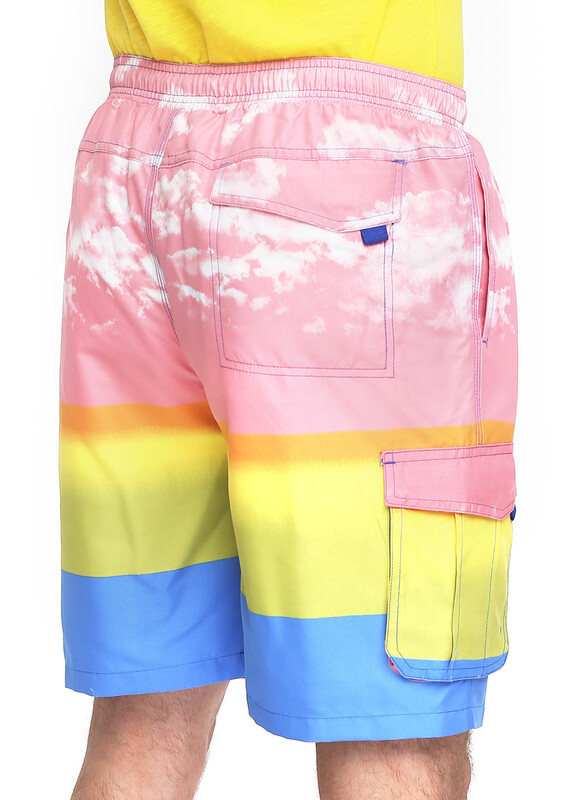 Отпускается р/р (5шт в упаковке). Пляжные мужские шорты в набивку с поясом на резинке имеют два накладных кармана по бокам и один накладной карман на липучке сзади. Выполнены из полиэстера. Модель исполнена в актуальных цветах и отлично подойдет для летних прогулок и плавания.