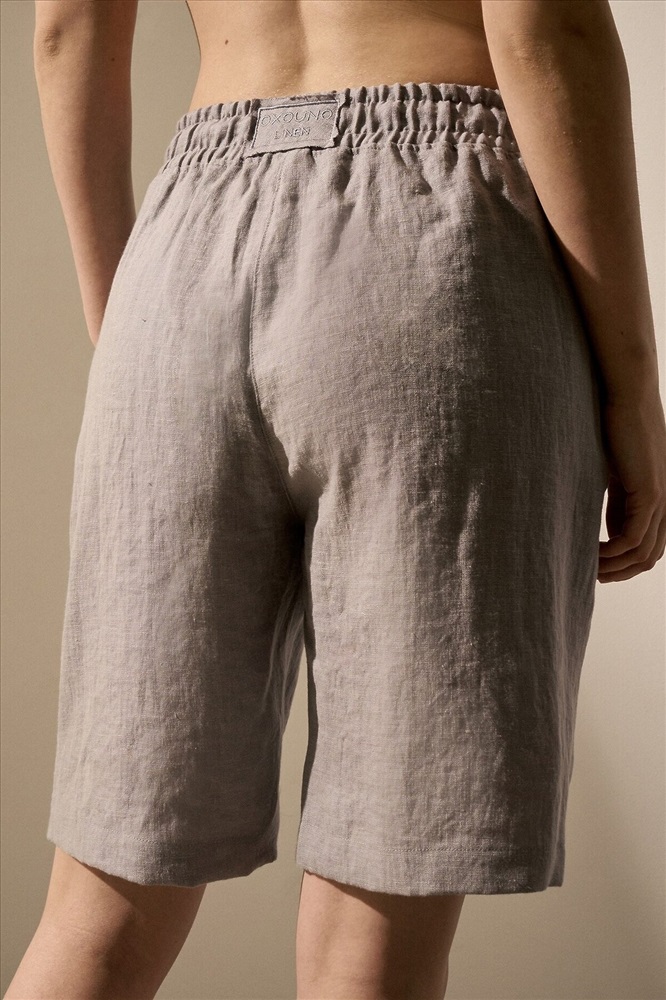 Шорты свободного кроя. Боковые карманы, эластичный пояс регулируется шнуром. Ткань - 100% лён.