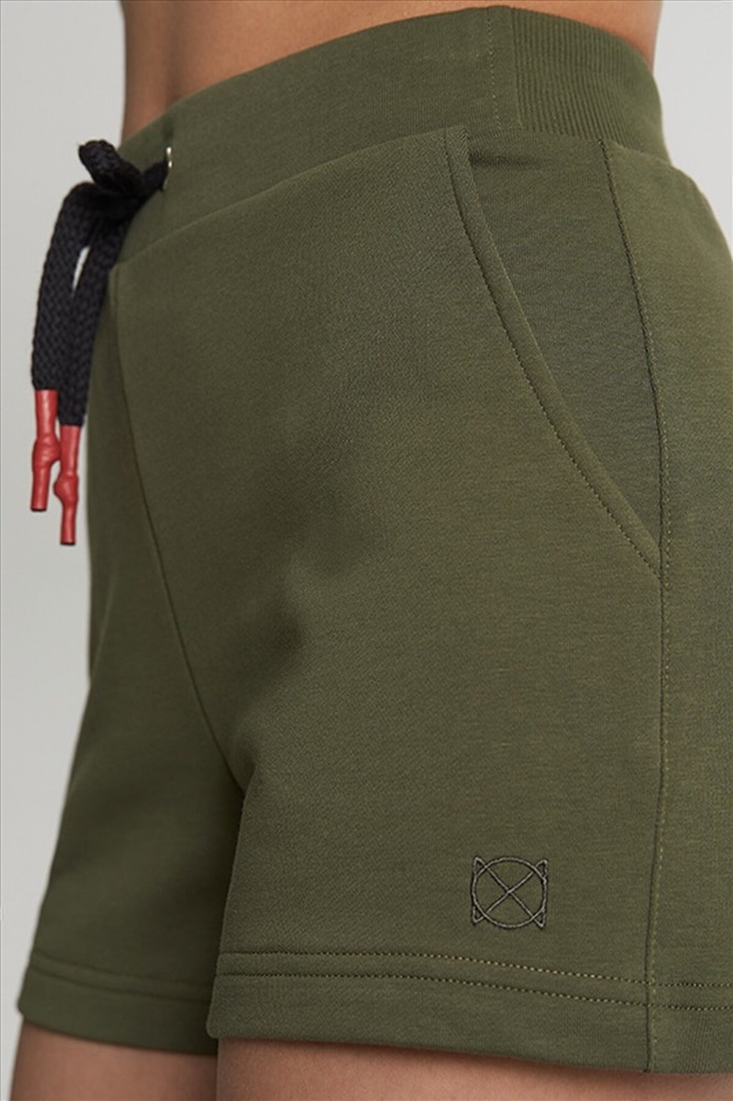 Страна производства: Россия Укороченные шорты с боковыми карманами. Пояс из двух частей. На поясе люверсы, жаккард, шнур с термоусадкой.