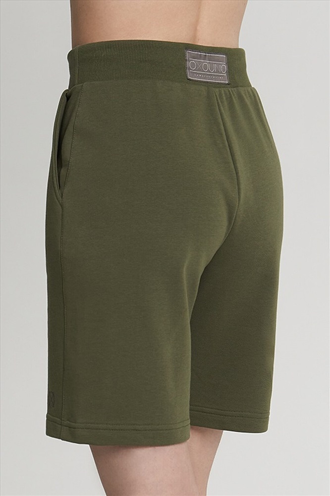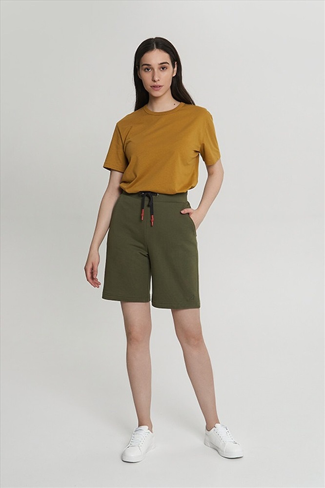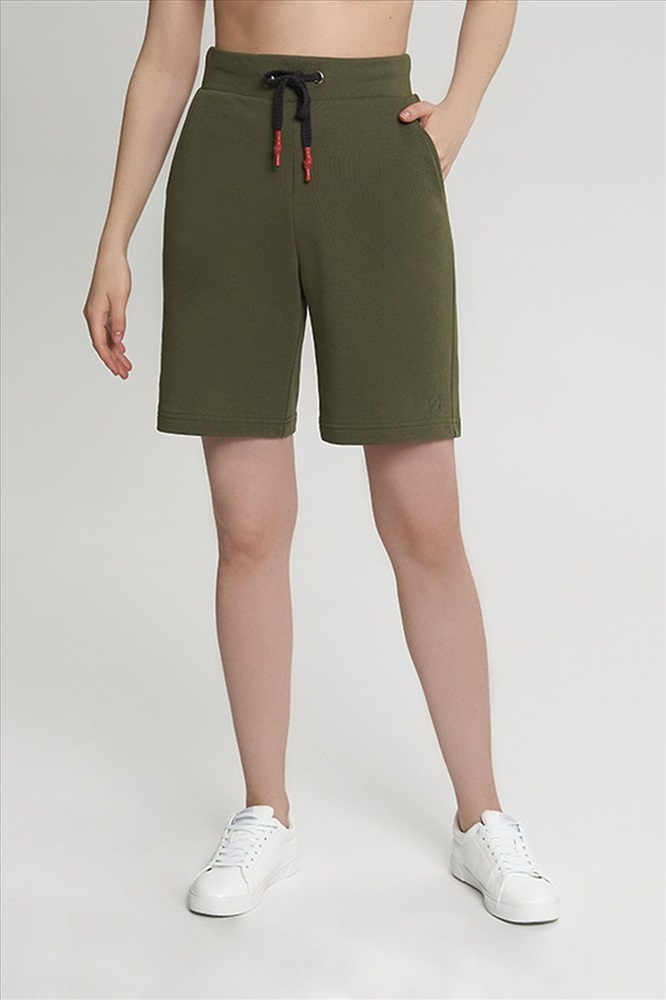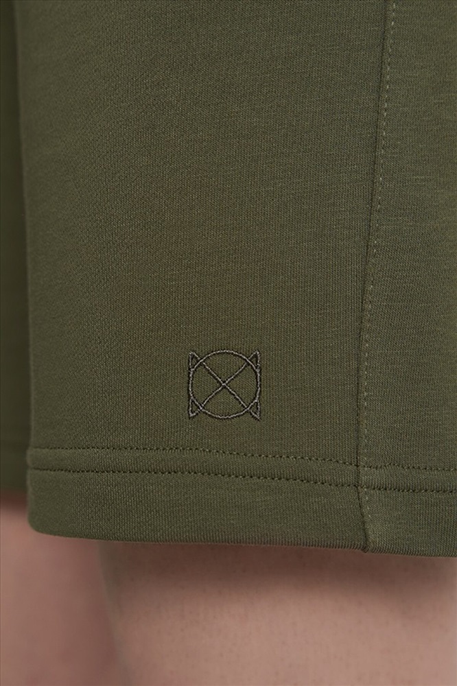 Удлиненные шорты с боковыми карманами. Пояс из двух частей. На поясе люверсы, жаккард, шнур с термоусадкой.
