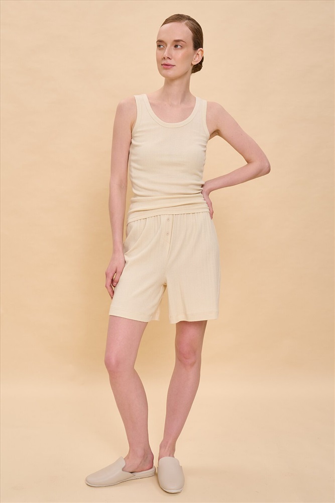 ID товара: 1062673 Состав: 95% Хлопок, 5% Эластан Сезон: Демисезон Длина: Средняя Фасон: Свободный Декоративные элементы: Пуговицы Основная ткань: Хлопок Страна бренда: Россия Страна производства: Китай Свободные укороченные домашние шорты с высокой посадкой из мягкого хлопкового трикотажа «пуантель» с мельчайшим геометрическим узором, напоминающим кружево. По талии расположена эластичная резинка, которая драпирует материал в небольшие мягкие складки. Шорты однотонные, без принта. Декоративный гульфик с пуговицами добавляет модели оригинальность. Шорты лёгкие женские прекрасно подойдут для уютных домашних образов. Стильные женские шортики выполнены в универсальных оттенках, легко сочетаются с любыми майками, футболками, джемперами. Помните о правильном уходе за изделием: ажурные шорты рекомендуется стирать при температуре не выше 30 °C, без предварительного замачивания, с изнанки. Это поможет сохранить качество и цвет шорт на длительное время. Не забывайте о выборе правильного размера. Используйте таблицу размеров на фотографии, чтобы выбрать подходящий для себя вариант. Обратите внимание, что цвет товара на экране вашего устройства может отличаться от реального. Комментарии к товару