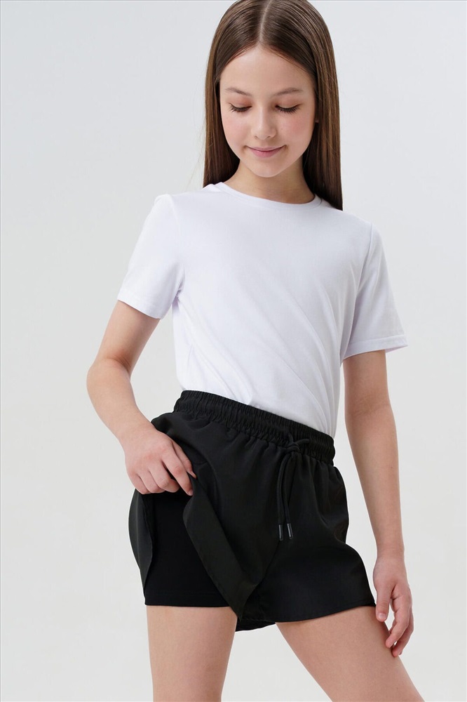ID товара: 1178895 Состав: 100% Полиэстер Сезон: Весна/Лето Длина: Средняя Фасон: Прямые Вид застежки: Шнурок Основная ткань: Полиэстер Стиль: повседневный Страна бренда: Германия Страна производства: Китай Классические чёрные трикотажные школьные шорты для девочки подростка от PlayToday — удобный и функциональный вариант для физкультуры, активных занятий и повседневной носки. Подойдут как школьная спортивная форма и для прогулок после уроков. Преимущества модели: + мягкий и дышащий трикотаж джерси + широкая эластичная резинка со шнурком + посадка comfort + два удобных боковых кармана + универсальный черный цвет + износостойкий материал (100% полиэстер) Эти чёрные подростковые шорты для девочек выполнены из лёгкого, прочного и приятного на ощупь трикотажа джерси. Благодаря прямому крою и мягкой посадке, они обеспечивают комфорт даже при активных движениях — будь то физкультура, подвижные игры во дворе или занятия спортом. Универсальные спортивные трикотажные шорты для подростков оснащены внутренними базовыми черными шортами, что особенно удобно при занятиях гимнастикой, танцами или спортом. Широкий пояс со шнурком позволяет подогнать посадку под индивидуальные параметры ребёнка, а вместительные карманы делают модель практичной и универсальной. Совет по стилю: сочетайте такие классические детские шорты для школы с футболками, лонгсливами и спортивными куртками от PlayToday. Летом — с лёгкими топами, в прохладное время — с худи или джемперами. Универсальный элемент, который легко впишется в любой спортивный или повседневный комплект. Уход не требует усилий: машинная стирка при температуре до 30°C, быстро сохнут, не вытягиваются и сохраняют форму после множества носок. Модель представлена на рост 122–170 см — подходит для девочек и подростков от 7 до 16 лет. Модные чёрные трикотажные шорты в школу и на физкультуру для девочки от PlayToday — комфорт, свобода движений и надёжность в одном изделии. Отличный выбор для уроков физкультуры, секций и активных дней в школе. Комментарии к товару