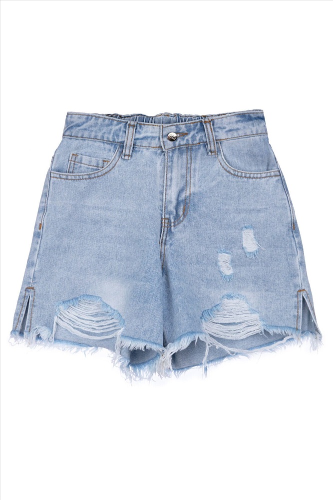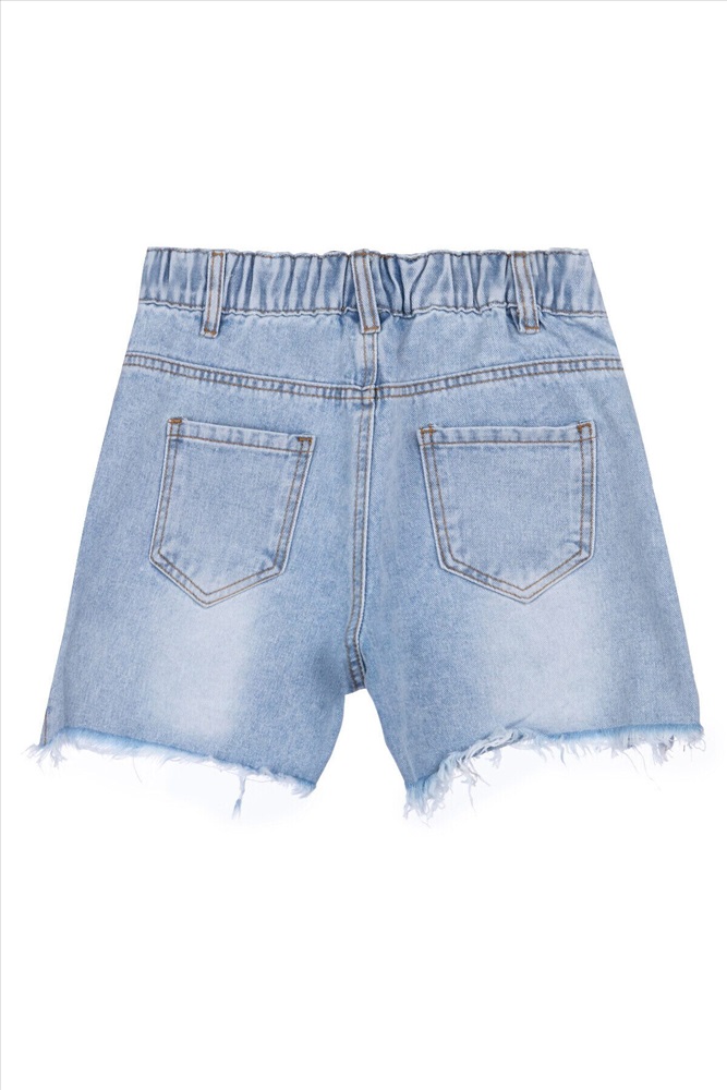 Джинсовые шорты из качественного денима. Хлопок 100%. Посадка comfort fit – свободный крой. Эластичный пояс на резинке. Оптимальная посадка, шорты не сползают при движении. Застежка на молнию и болт. Функциональные карманы. Модель в стиле "гранж" - в качестве декора использованы потертости.