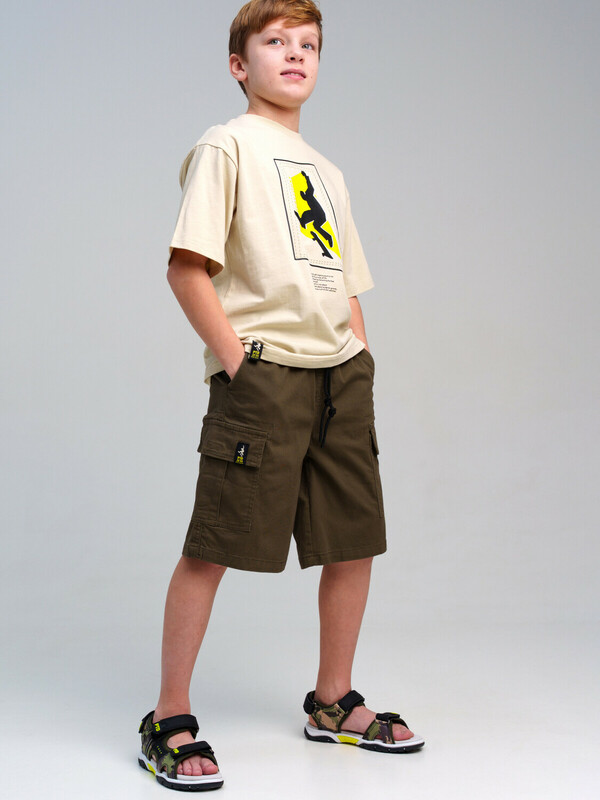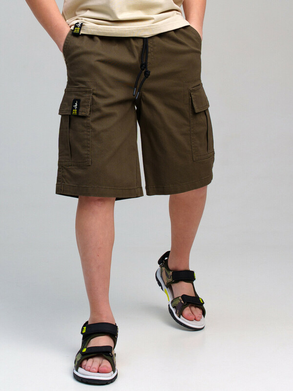 Шорты для мальчика подростка. Высокое содержание хлопка. Шорты на резинке со шнурком. Функциональные боковые и накладные карманы. Модель выполнена из качественного и плотного текстиля.
