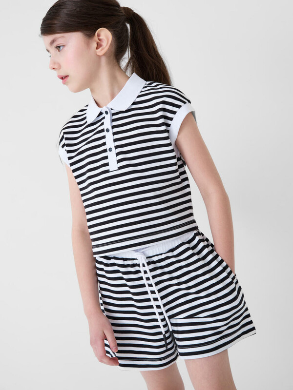 Шорты для девочки подростка. Модель в длине мини, свободного кроя из мягкого, хлопкового трикотажа пике. Удобная посадка обеспечивается эластичным поясом со шнуром. Спереди — боковые карманы.