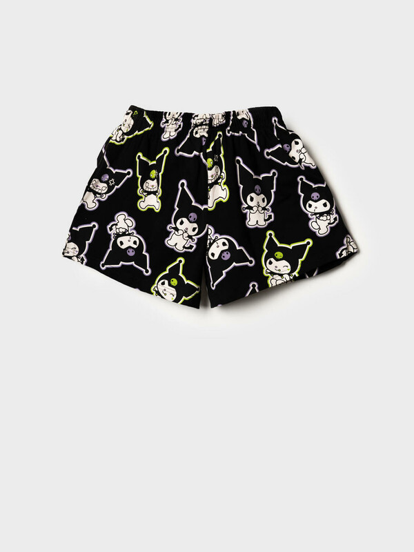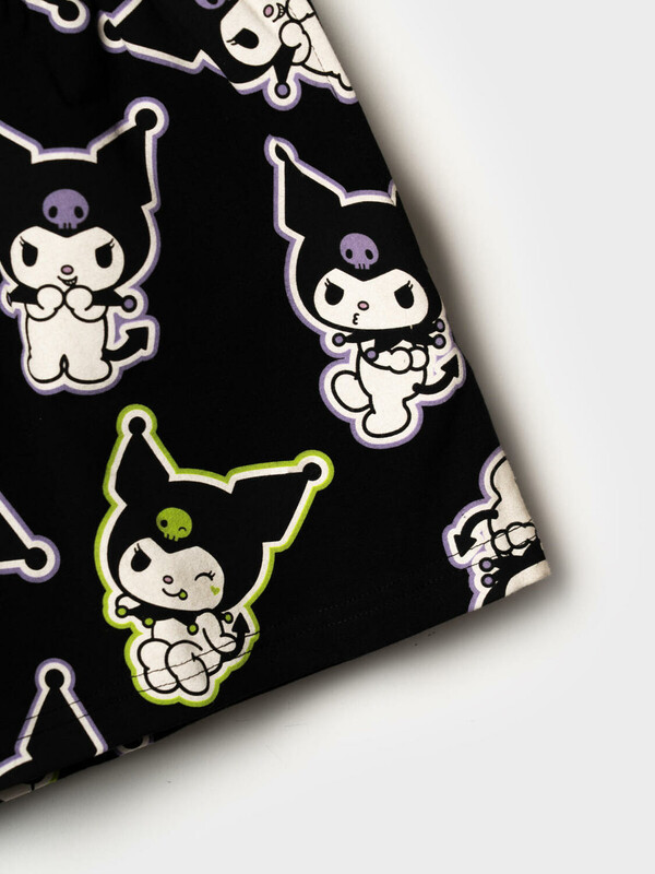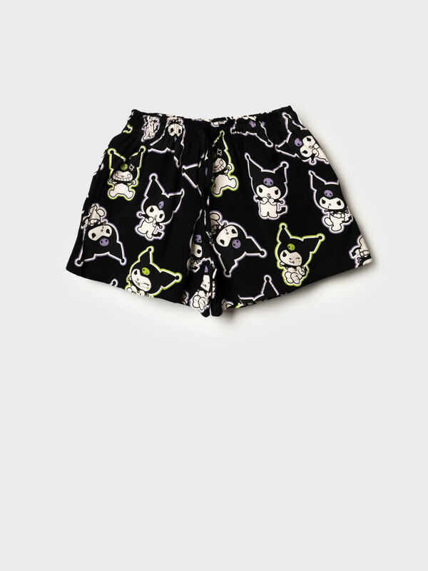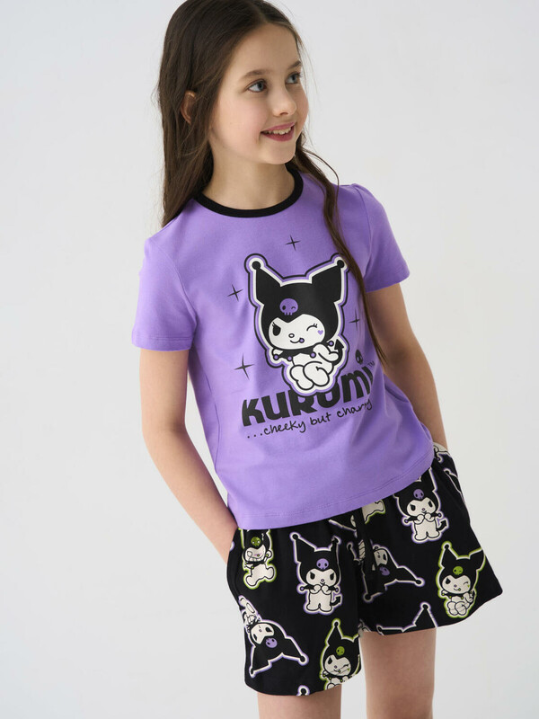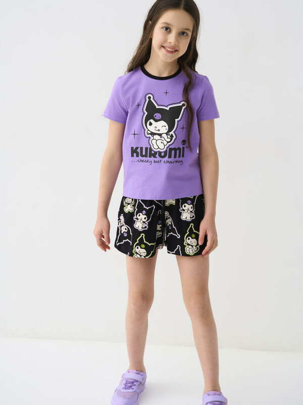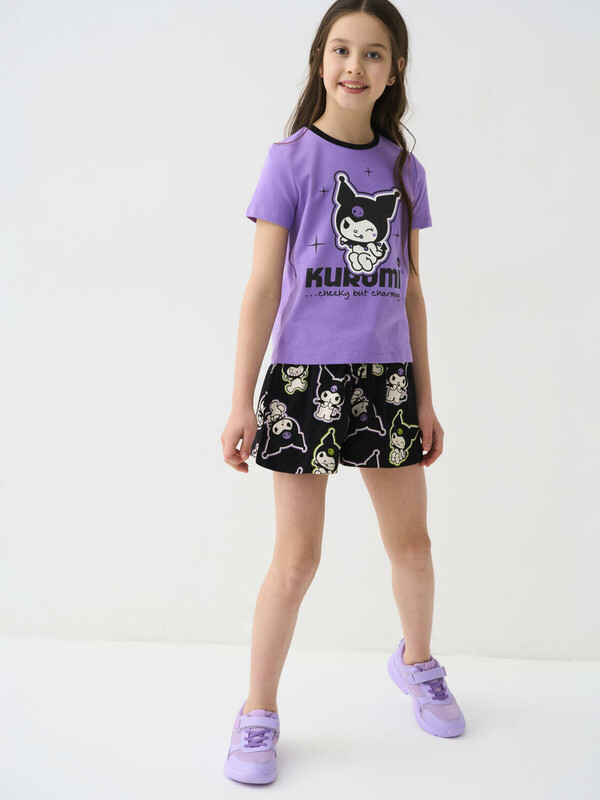 Шорты для девочки подростка. Модель свободного кроя из мягкого, хлопкового трикотажа джерси. Удобная посадка обеспечивается эластичным поясом со шнуром. Спереди — боковые карманы. Дизайн выполнен с любимым мультяшным героем Куроми.
