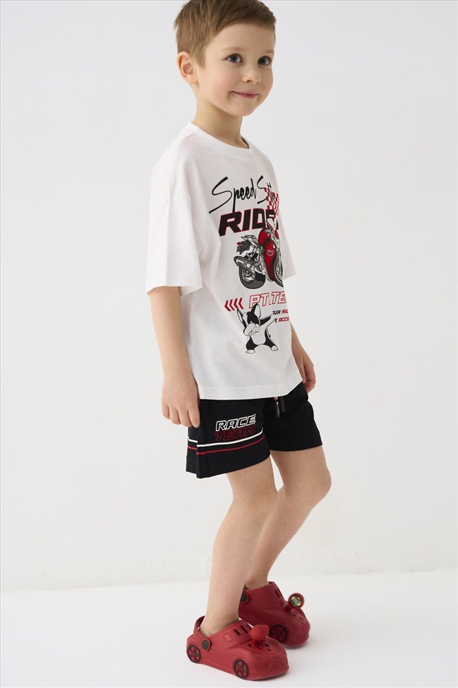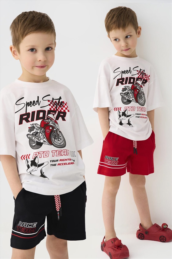 ID товара: 1239882 Состав: 95% хлопок, 5% эластан Сезон: Весна/Лето Набор детских шорт для мальчика. В комплект входят две пары шорт свободного кроя, длиной выше колена. Принты в гоночной тематике. Модели из мягкого, хлопкового трикотажа джерси. Удобная посадка обеспечивается эластичным поясом со шнуром. По бокам расположены два кармана. Комментарии к товару