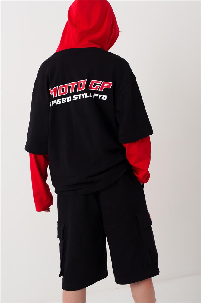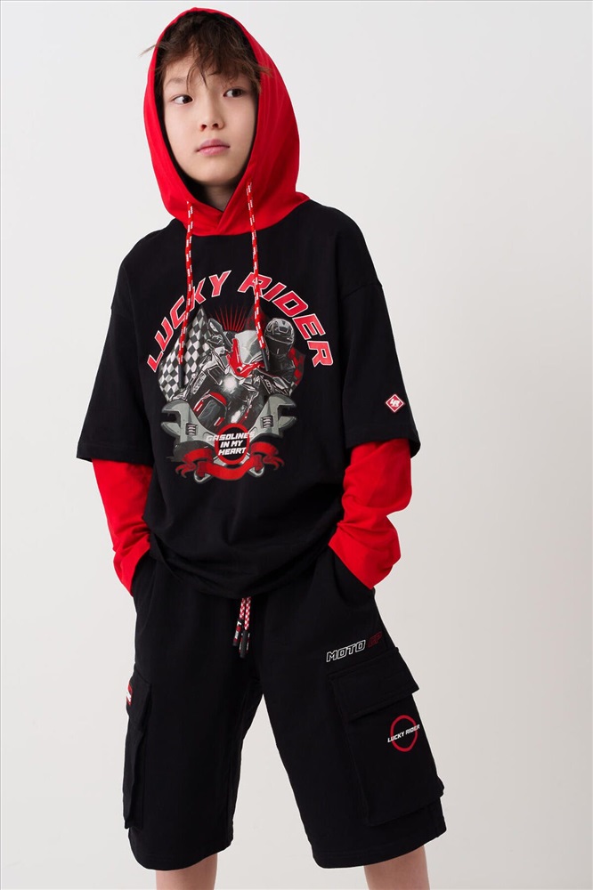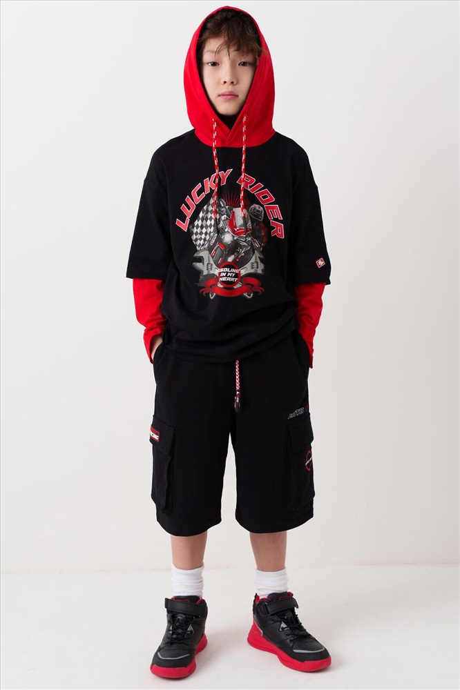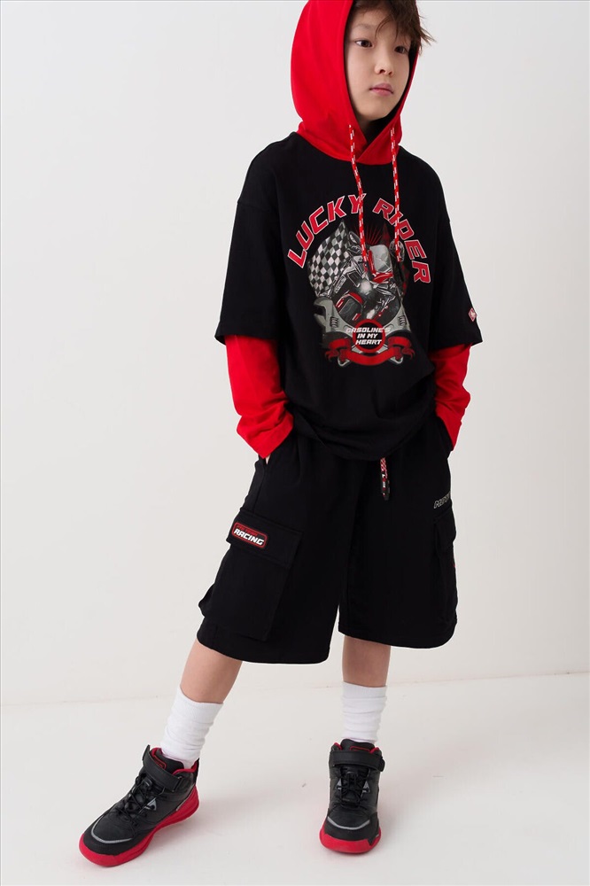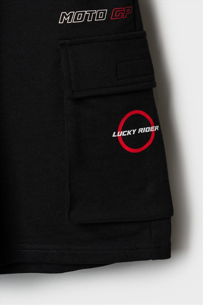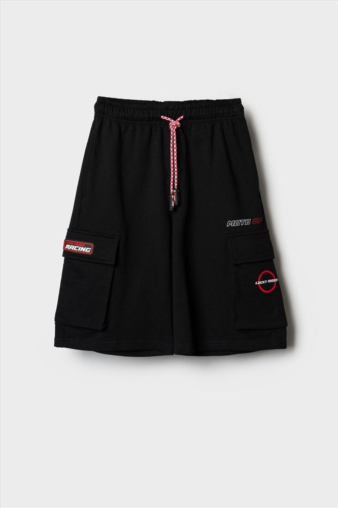 ID товара: 1239851 Состав: 60% хлопок, 40% полиэстер Сезон: Весна/Лето Чёрные трикотажные шорты для мальчика подростка с комфортной посадкой и длиной ниже колена. У шорт эластичный пояс с широкой резинкой и шнуром. Спереди расположены боковые карманы, а по бокам – объёмные карманы-карго с клапанами на липучках. На левом кармане нашивка "RACING", на правом – принт "LUCKY RIDER", рядом – надпись "MOTO GP". Шорты подойдут для активного отдыха и повседневной носки летом. Комментарии к товару