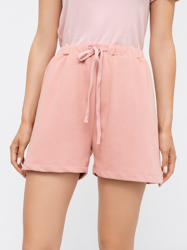 Производитель: Mark Formelle Мини-шорты свободного силуэта из легкого трикотажного футера. Высокая посадка на талии, эластичная тесьма в поясе, регулировочный шнурок-завязка и удобные боковые карманы – комфортный минимализм!