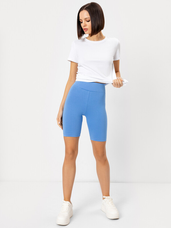 Шорты-велосипедки облегающего силуэта. Выполнены из нежной хлопковой кулирки. Длина модели выше колен. Линия талии завышенная. Широкий отрезной пояс и эластичная тесьма в талии дарят особый комфорт.