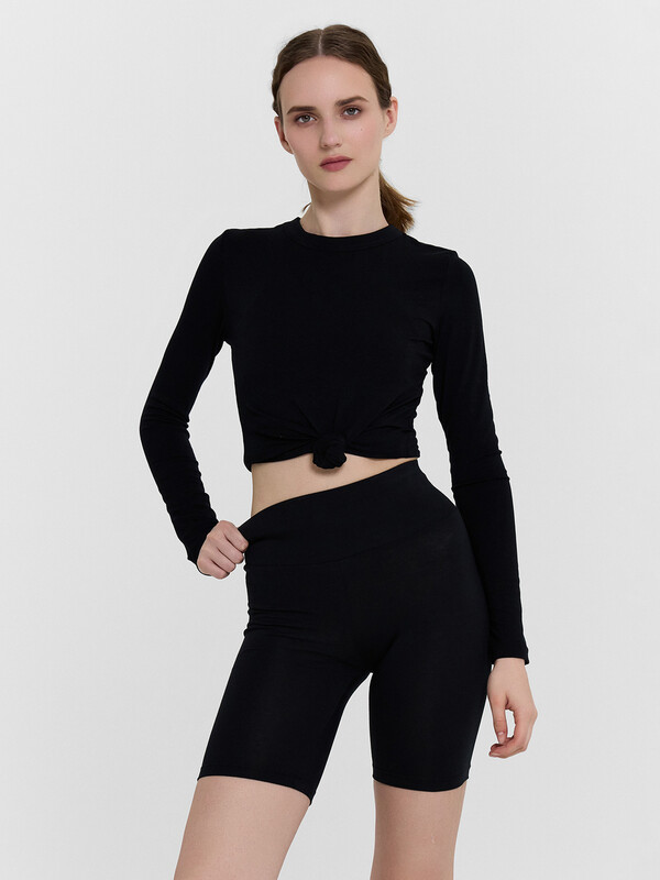 Шорты облегающего силуэта, длиной выше колен. Пояс отрезной широкий с эластичной