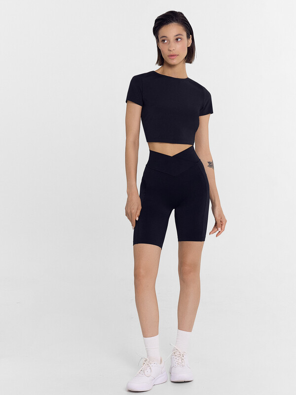 Шорты облегающего силуэта, с высокой посадкой.