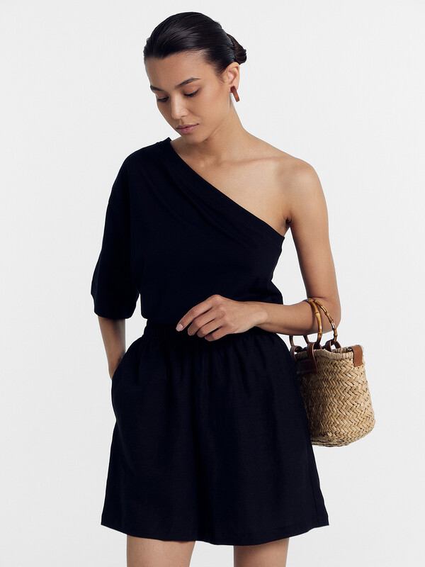 Производитель: Mark Formelle Шорты свободного силуэта, короткие.  Пояс цельнокроеный, с втаченной эластичной тесьмой 40RV. Низ шорт обработан швом в подгибку.