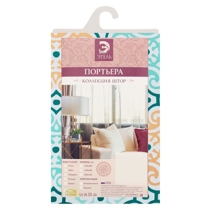 Габариты: 36 x 24 x 3 В боксе: 10 шт Габариты товара: 250 см × 135 см Ширина, см: 135 Вид упаковки: PVC-пакет Место назначения: В гостиную, В спальню Рекомендации по уходу: Барабанная сушка при низкой температуре, Не отбеливать, Стирка при 30 °С Фиксированная цена: Да Страна: Россия Состав: Полиэстер 100% Материалы: полиэстер Фасовка: по 1 шт Сертификат: ЕАС Цвет: Зелёный Ткань: Блэкаут Высота, см: 250 Тематика: Орнамент Фотоштора: Нет Декоративные элементы: Без элементов Тип крепления: Шторная лента Состав ткани: Полиэстер Светопроницаемость, %: 10 Вид: Портьеры Комплектация: Штора - 1 шт. Штора «Этель» — верное решение для преображения вашего дома. Она сделает интерьер более индивидуальным и уютным. Портьерная штора пошита из блэкаута. Этот материал: