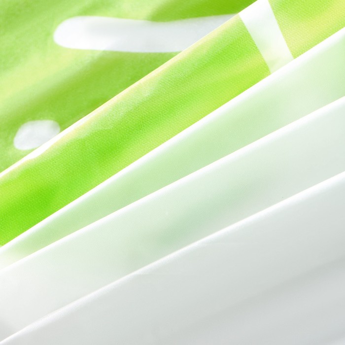 Материал PEVA - совершенно нетоксичный полимерный материал, не обладающий запахом. Они совсем не впитывают влагу, поэтому можно не беспокоиться о том, что штору придется часто просушивать. Кроме того, в случае необходимости их можно аккуратно укоротить с помощью самых обычных ножниц — края не потребуют дополнительной обработки. Да и в уходе они неприхотливы — их достаточно протирать губкой, смоченной в мыльном растворе.