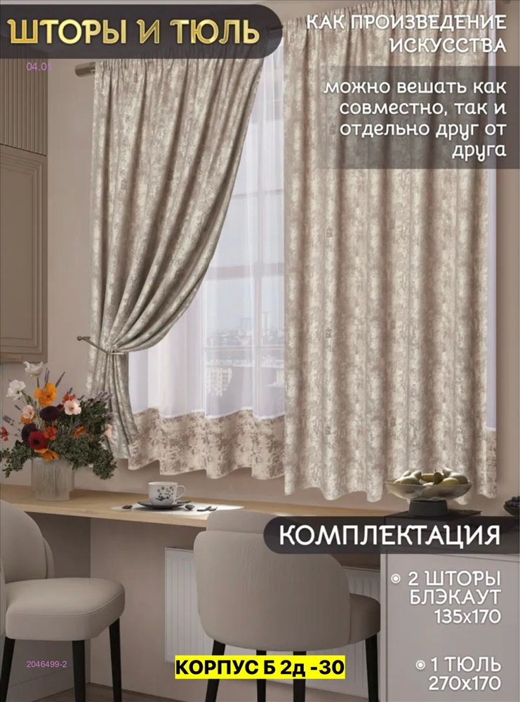 Комплекте Шторы кухня ткань мрамор
