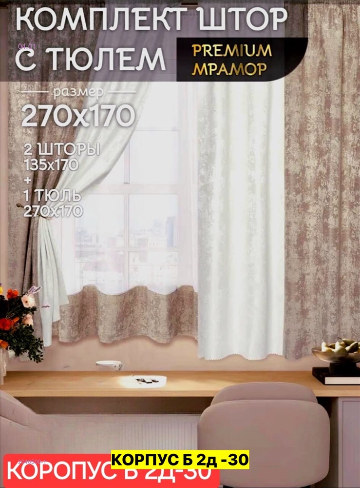 Комплекте Шторы кухня ткань мрамор