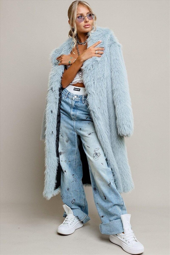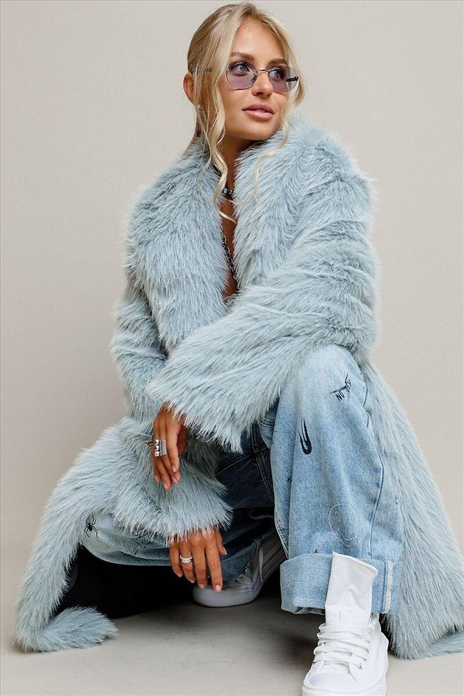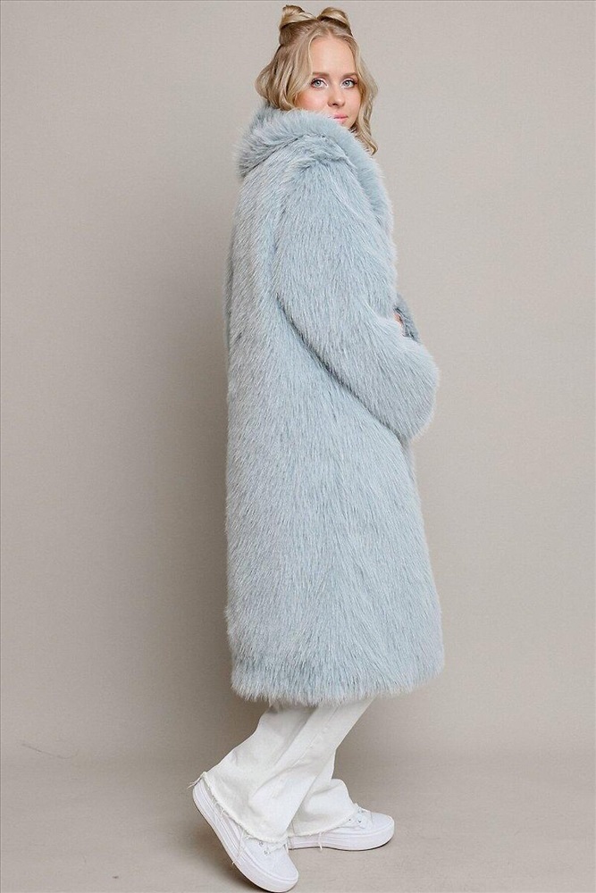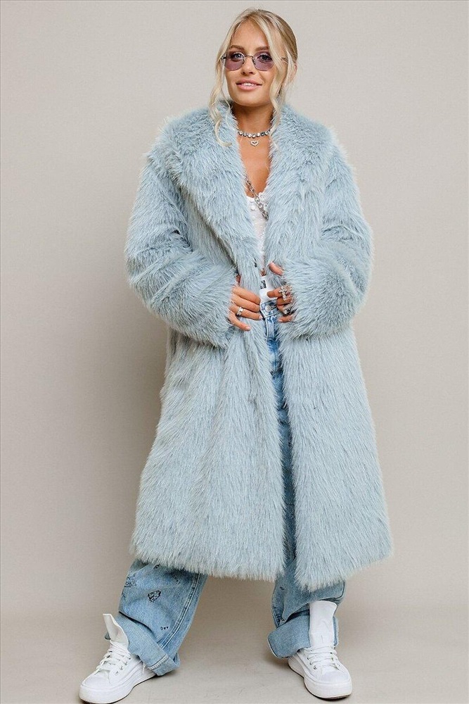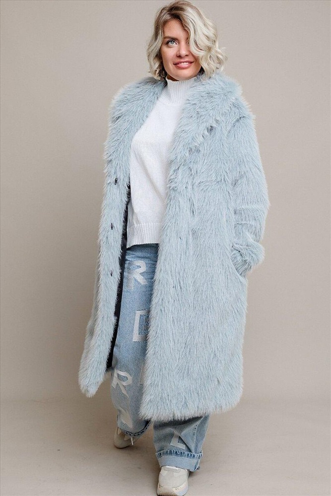 Шуба Ваниль средней длины с воротником, на кнопках. Выполнена из актуального экомеха с утеплителем 60 г/м² и приятным мягким подкладом. Стильная зимняя шубка на каждый день для взрослых и подростков. Расцветка серо-голубая однотонная.