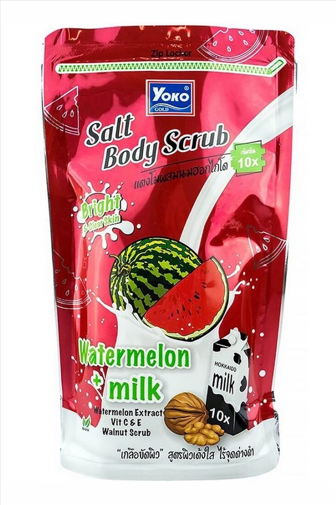Скраб для тела с арбузом и молоком от тайского бренда Yoko обладает очищающим и заживляющим эффектом, способствует замедлению процессов старения кожи, насыщает её ценными питательными компонентами, оказывает тонизирующее влияние. Органический состав скраба способствует глубокому очищению эпидермиса, обеспечивает свободный доступ кислорода к клеткам. Арбуз содержит впечатляющее количество антиоксидантов, которые восстанавливают и подтягивают кожу, делают ее упругой и эластичной. Молоко деликатно отбеливает и улучшает цвет кожи. Измельченная скорлупа грецкого ореха действует как отшелушивающее средство. Преимущества скраба: Улучшает микроциркуляцию кожи; Существенно улучшается лимфоток; Выравнивает и разглаживает бугристую поверхность, устраняет целлюлит; Способствует быстрой регенерации кожи; Великолепно увлажняет ткани. Тайские солевые скрабы от Yoko – невероятно эффективные косметические средства, которые глубоко очищают эпидермис, освобождают поры от грязи и токсичных веществ, а также, обеспечивают свободный доступ кислорода к клеткам. Способ применения: Разотрите небольшое количество скраба в ладонях. Легкими круговыми движениями помассируйте кожу. Через 3 минуты смойте теплой водой. Использовать скраб лучше всего вечером, после принятия ванны или душа. Для усиления эффекта, тело рекомендуется слегка распарить. Состав: Sodium Chloride, Glycerin, Aqua (Water), Parfum (Fragrance), Juglans Regia Shell Powder, Sodium Laureth Sulfate, Sodium Lauryl Sulfate, Olea Europaea Fruit Oil, Propylene Glycol, Tocopheryl Acetate, Magnesium Ascorbyl Phosphate, Cl 16035, Butylene glycol, Milk Extract, Sodium Ferrocyanide, Benzyl Alcohol, Dehydroacetic Acid, Benzoic Acid, Sorbic Acid, Citrullus lanatus (watermelon) Fruit Extract.