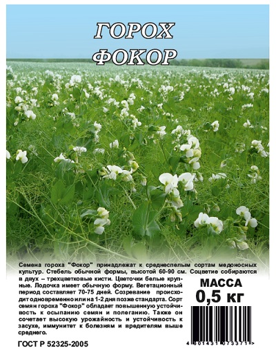 Семена гороха "Фокор" принадлежат к среднеспелым сортам медоносных культур. Стебель обычной формы, высотой 60-90 см. Соцветие собираются в двух – трехцветковые кисти. Цветочки белые, крупные. Лодочка имеет обычную форму. Вегетационный период составляет 70-75 дней. Созревание происходит одновременно или на 1-2 дня позже стандарта. Сорт семян гороха "Фокор" обладает повышенную устойчивость к осыпанию семян и полеганию. Также он сочетает высокую урожайность и устойчивость к засухе, иммунитет к болезням и вредителям выше среднего. Фасовка 0,5кг Комментарии к товару
