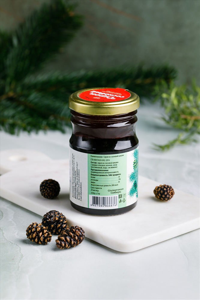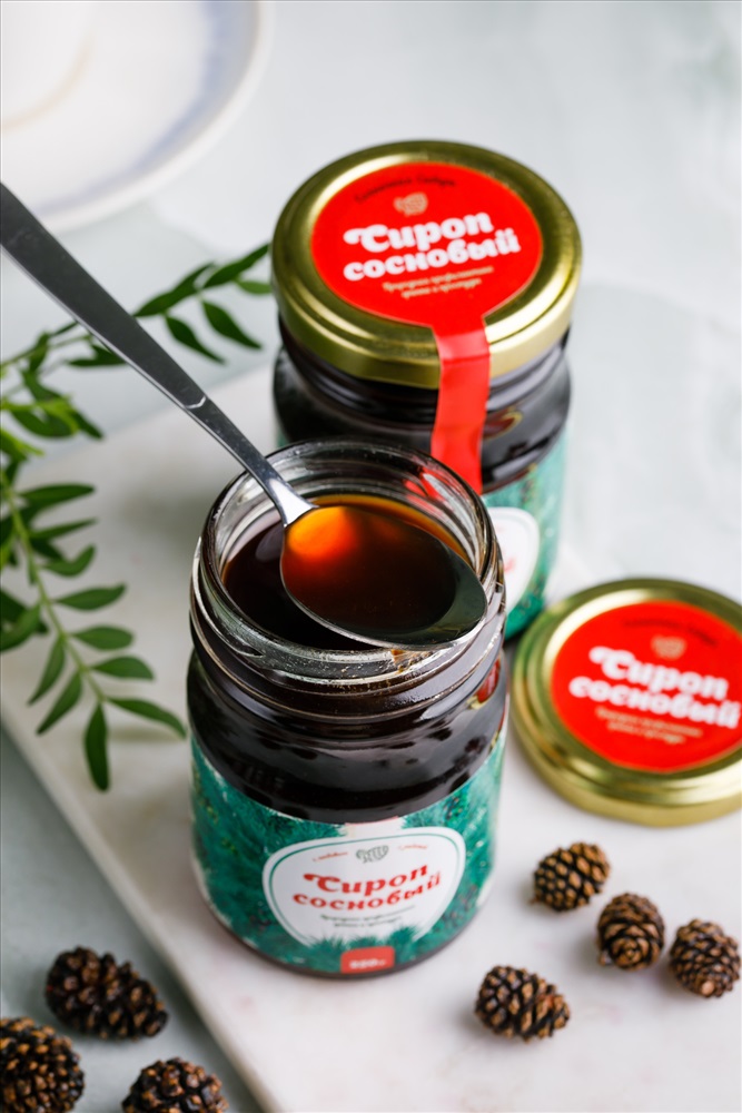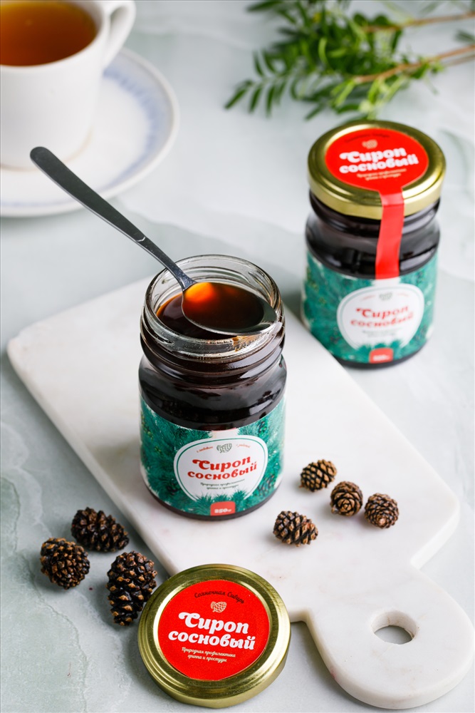 Это абсолютно тот же сироп, что и в варенье из Сосновой шишки, и обладает теми же свойствами. Очень хорошо использовать для различных десертов или в чай, кофе. Зеленые сосновые шишки благотворно влияют на иммунитет, обладают фитонцидными свойствами, стимулируют кроветворение, нормализуют деятельность ЖКТ. Активные вещества сосновых шишек выводят из организма токсины, соли тяжелых металлов, радионуклиды. При простудных заболеваниях ценится отхаркивающее действие, помогающее справиться с затянувшимся кашлем. Высокая концентрация витамина C объясняет противоцинготное свойство. Препараты из хвойных шишек избавляют организм от лишней жидкости, при этом восстанавливая электролитный баланс. Состав: Сироп из сосновых шишек(сахар тростниковый, вода питьевая, шишки сосновые зеленые, сок лимона) Комментарии к товару