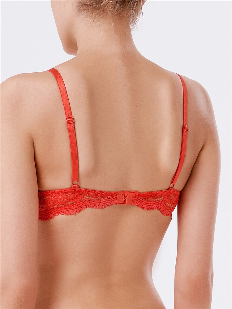 Красный – идеальный оттенок, чтобы создать дерзкий и чувственный образ. Соблазнительное сочетание пудровой атласной основы и изящного кружевного обрамления в модели Push Up создано, чтобы покорять и восхищать. А при помощи модели с формованной чашкой можно легко создать «эффект кружевной вуали» на обнаженной коже. В комплекте также представлены трусики – слипы и бразилианы.